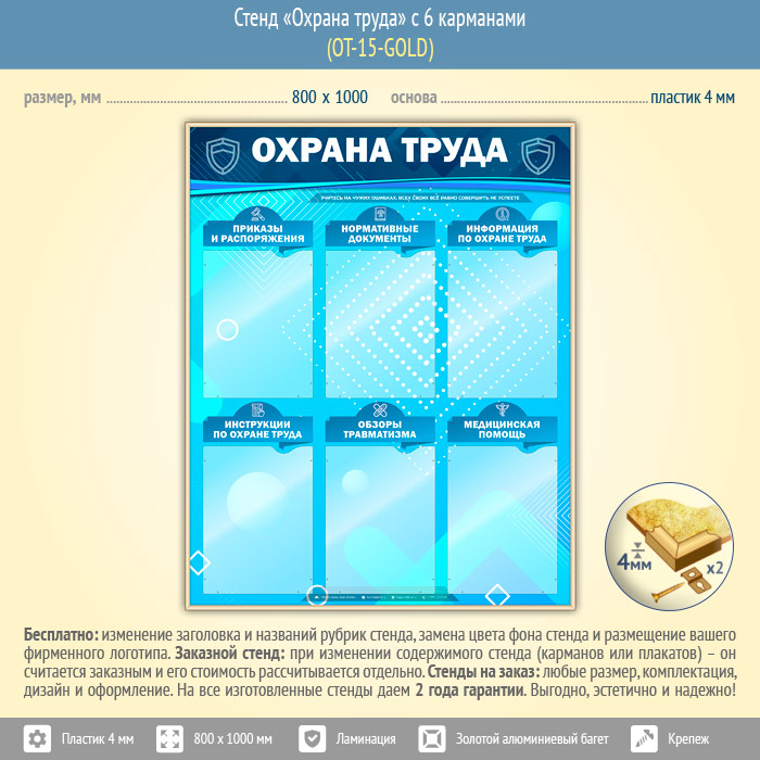 Стенд «Охрана труда» с 6 карманами (OT-15-GOLD) в Тюмени купить