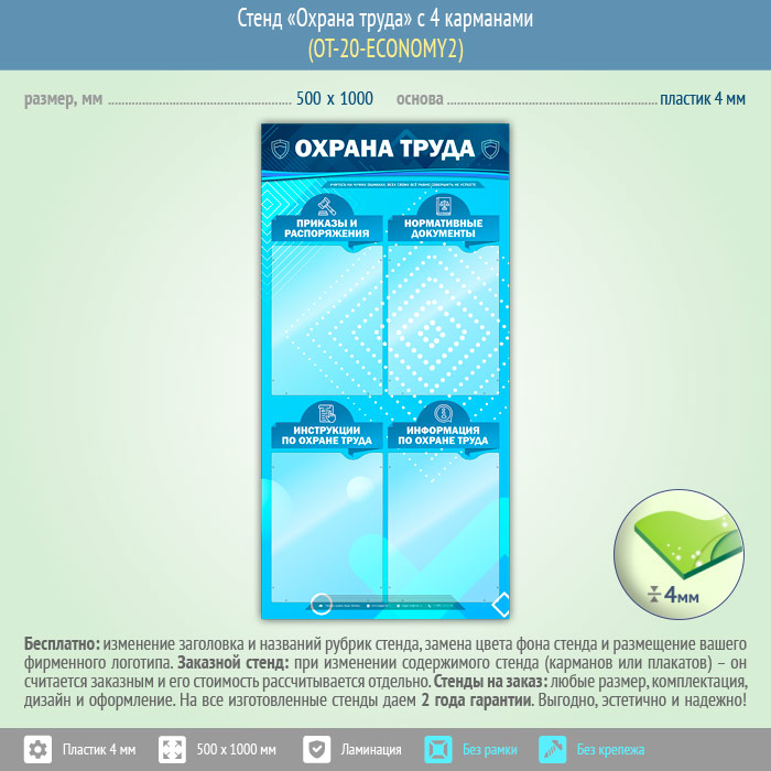 Стенд «Охрана труда» с 4 карманами (OT-20-ECONOMY2) в Тюмени купить