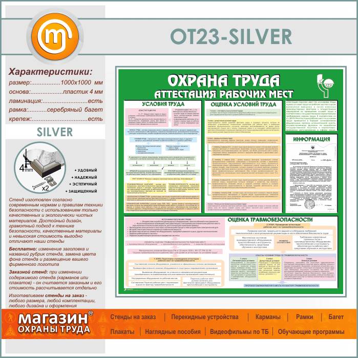 Стенд «Охрана труда. Аттестация рабочих мест» с карманом (OT-23-SILVER) в Тюмени купить