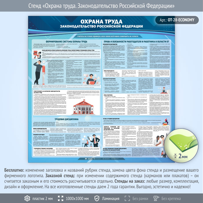 Стенд «Охрана труда. Законодательство Российской Федерации» (OT-28-ECONOMY) в Тюмени купить