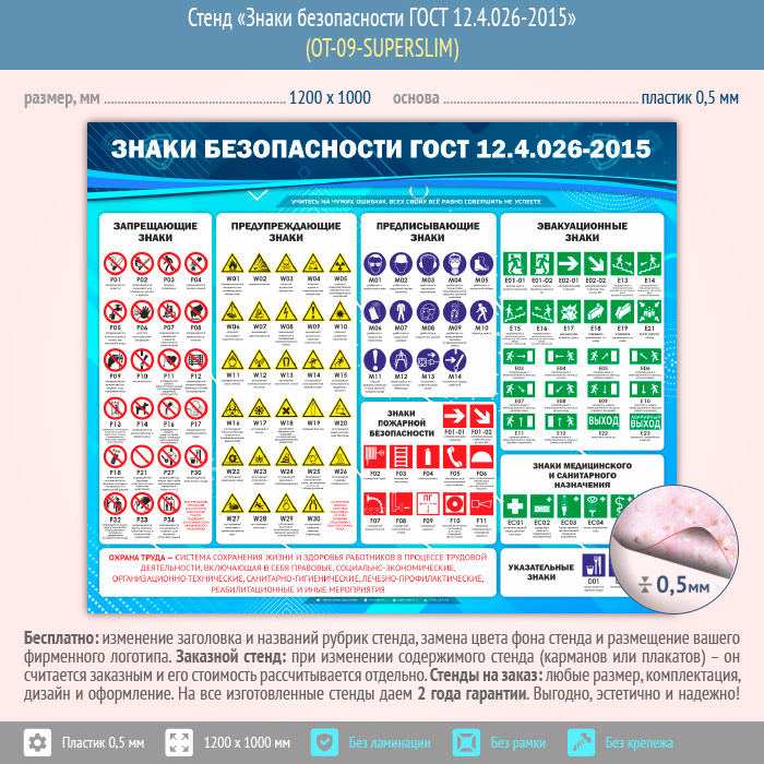 Стенд «Знаки безопасности ГОСТ 12.4.026-2015» (OT-09-SUPERSLIM) в Тюмени купить