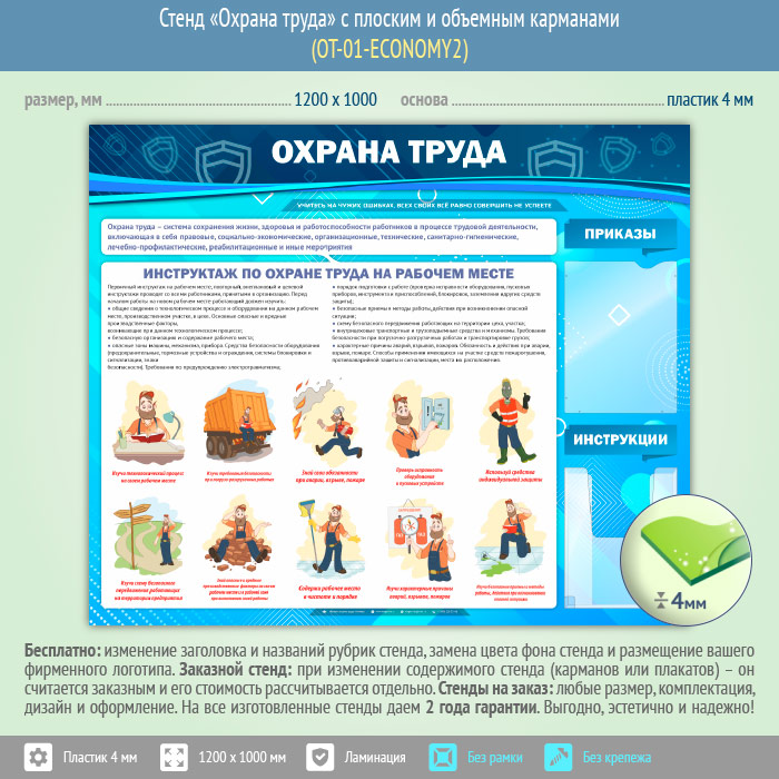 Стенд «Охрана труда» с плоским и объемным карманами (OT-01-ECONOMY2) в Тюмени купить