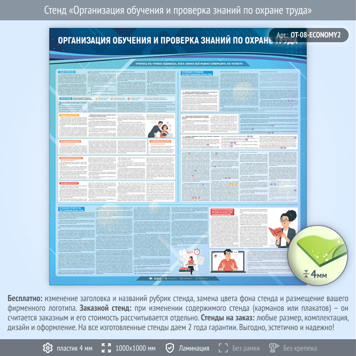 Стенд «Организация обучения и проверка знаний по охране труда» (OT-08-ECONOMY2) в Тюмени купить