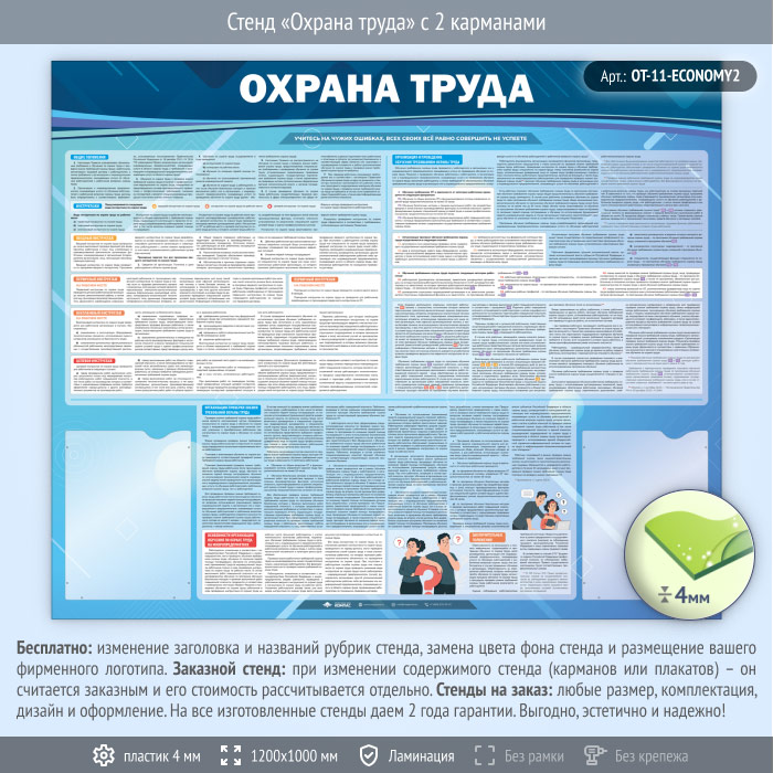 Стенд «Охрана труда» с 2 карманами (OT-11-ECONOMY2) в Тюмени купить