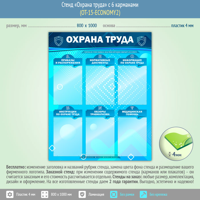 Стенд «Охрана труда» с 6 карманами (OT-15-ECONOMY2) в Тюмени купить