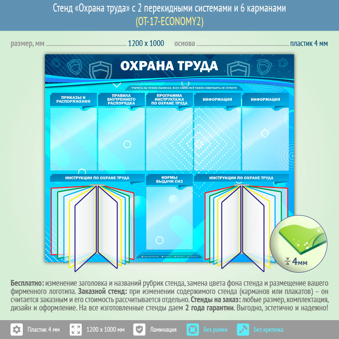 Стенд «Охрана труда» с 2 перекидными системами и 6 карманами (OT-17-ECONOMY2) в Тюмени купить