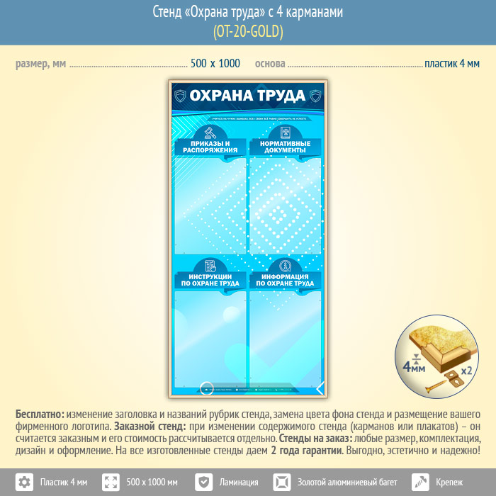 Стенд «Охрана труда» с 4 карманами (OT-20-GOLD) в Тюмени купить