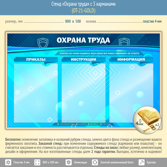 Стенд «Охрана труда» с 3 карманами (OT-21-GOLD) в Тюмени купить