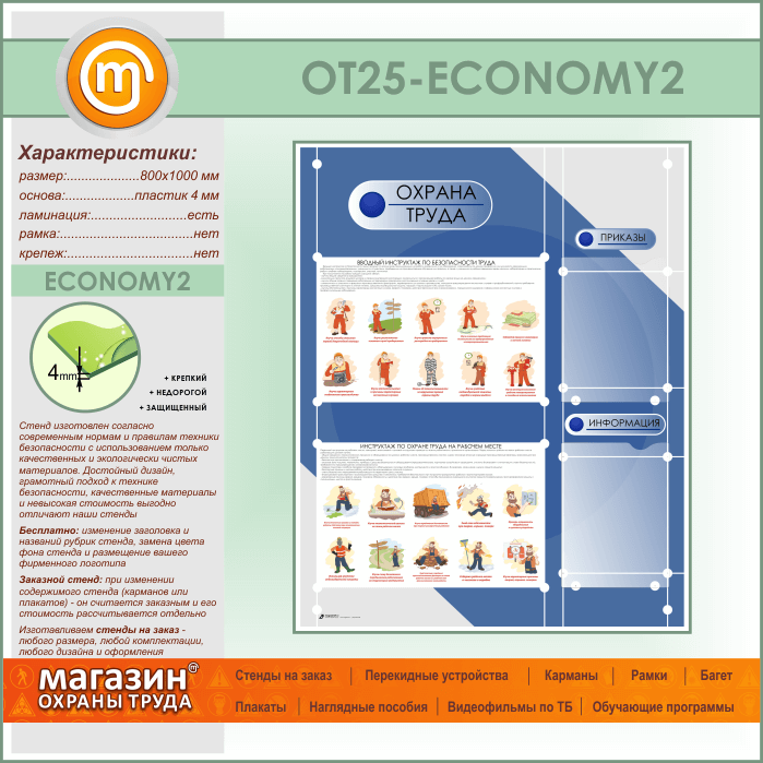 Стенд «Охрана труда» с 2 плоскими карманами (OT-25-ECONOMY2) в Тюмени купить