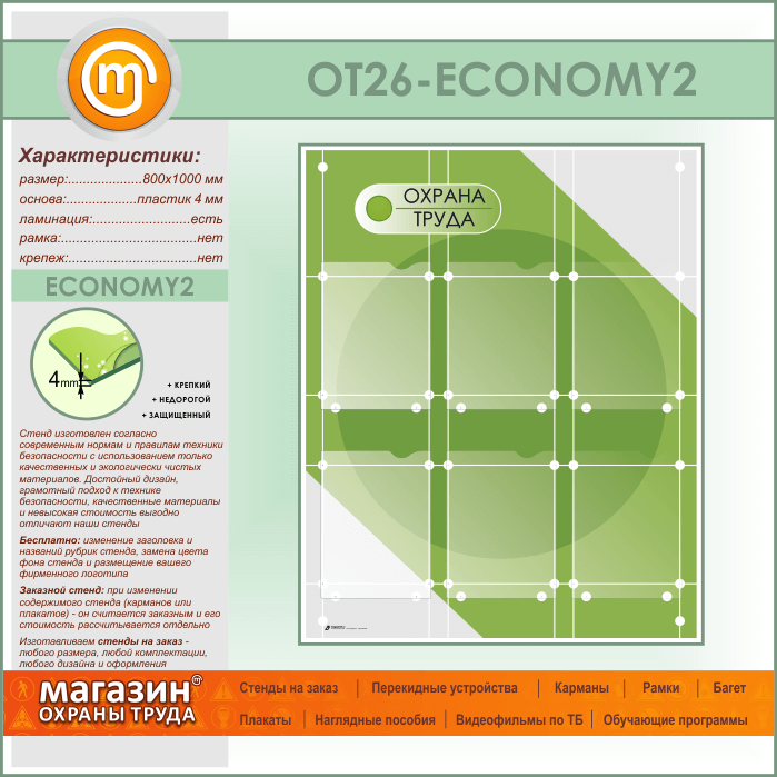 Стенд «Охрана труда» с 6 плоскими карманами (OT-26-ECONOMY2) в Тюмени купить