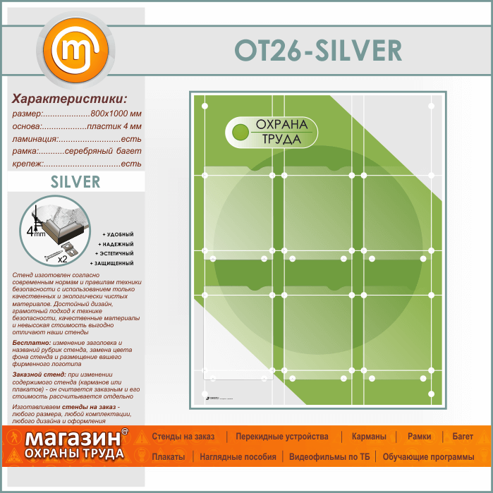 Стенд «Охрана труда» с 6 плоскими карманами (OT-26-SILVER) в Тюмени купить