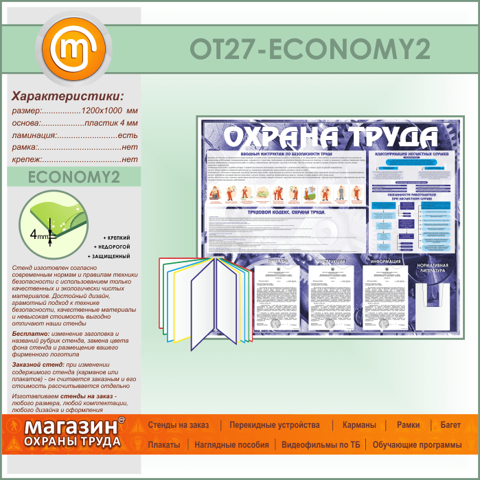 Стенд «Охрана труда» с перекидной системой, 3 плоскими и 1 объемным карманом (OT-27-ECONOMY2) в Тюмени купить