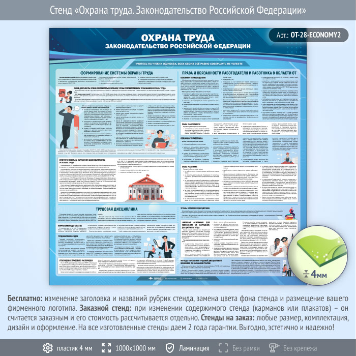 Стенд «Охрана труда. Законодательство Российской Федерации» (OT-28-ECONOMY2) в Тюмени купить