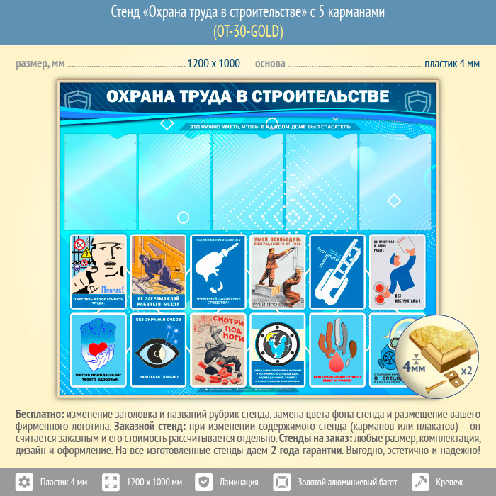 Стенд «Охрана труда в строительстве» с 5 карманами (OT-30-GOLD) в Тюмени купить