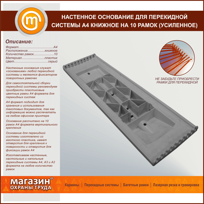 Настенное основание для перекидной системы А4 книжное на 10 рамок (усиленное) в Тюмени купить