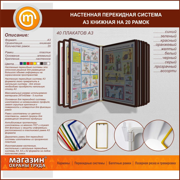 Настенная перекидная система А3 на 20 рамок книжная в Тюмени купить