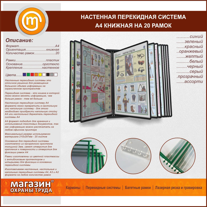 Настенная перекидная система А4 на 20 рамок книжная в Тюмени купить