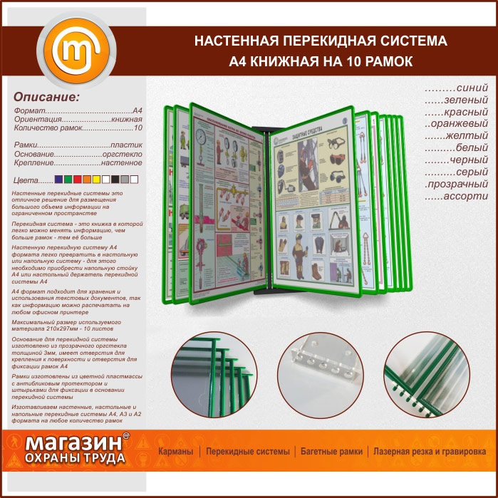 Настенная перекидная система А4 на 10 рамок книжная в Тюмени купить