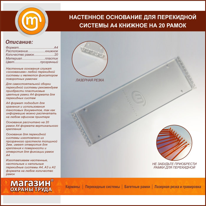 Настенное основание для перекидной системы А4 книжное на 20 рамок (оргстекло) в Тюмени купить