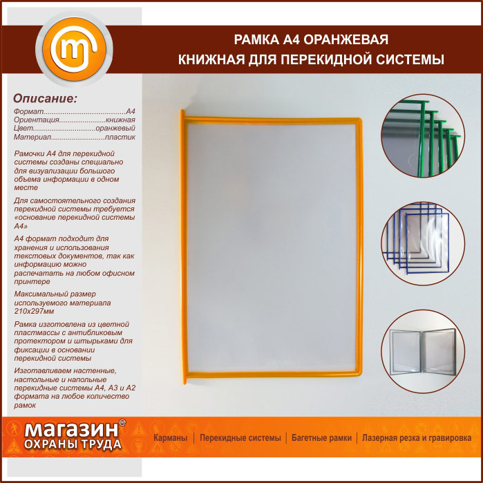 Рамка А4 оранжевая книжная в Тюмени купить