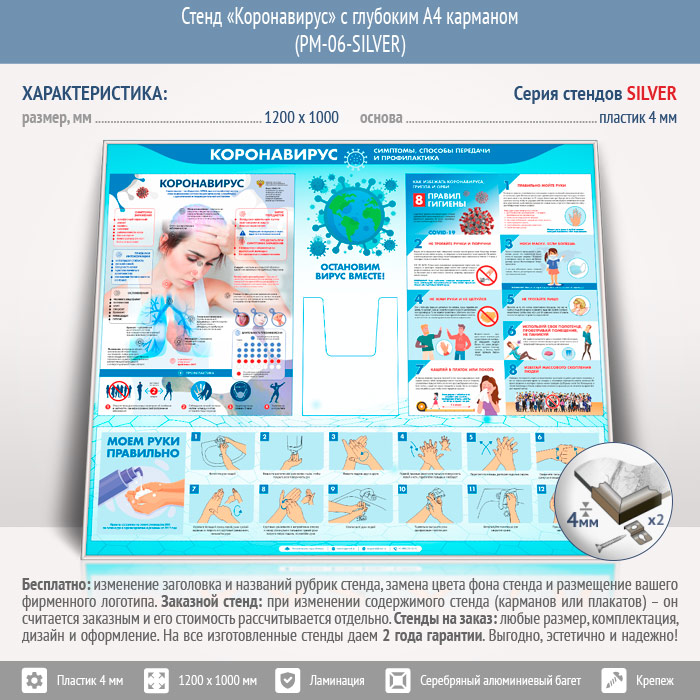 Стенд «Коронавирус» с глубоким А4 карманом (PM-06-SILVER) в Тюмени купить