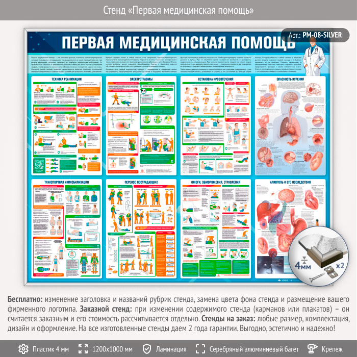 Стенд «Первая медицинская помощь» (PM-08-SILVER) в Тюмени купить