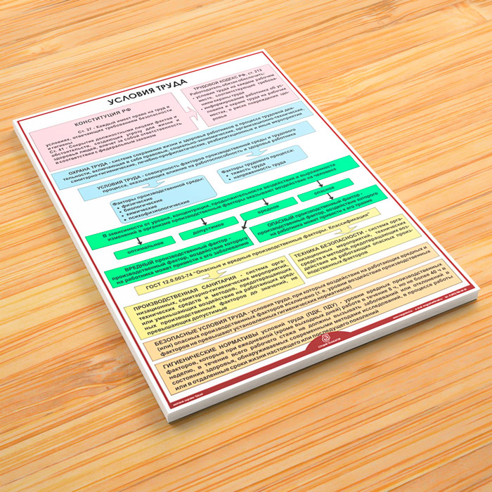 - Плакат «Условия труда» – конституция, кодекс, вредные факторы, санитария, техника безопасности