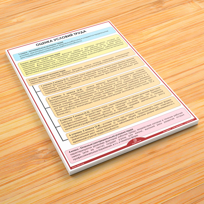 - Плакат «Оценка условий труда» – по классам – оптимальные, допустимые, вредные и опасные условия