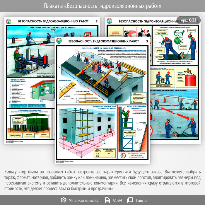 Комплект плакатов «Безопасность гидроизоляционных работ» из 3 листов – достойное качество и полезная информация по приемлемой цене