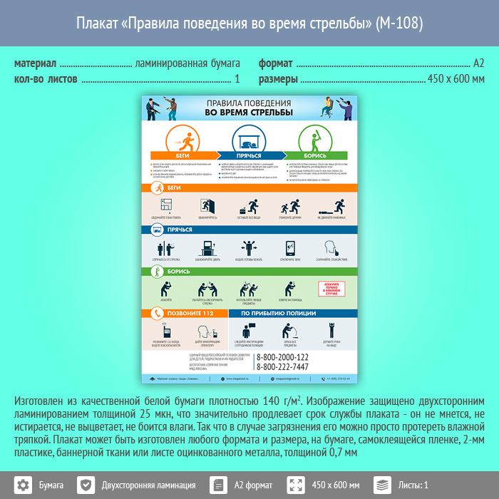 Плакат «Правила поведения во время стрельбы» (М-108, ламинированная бумага, А2, 1 лист) в Тюмени купить