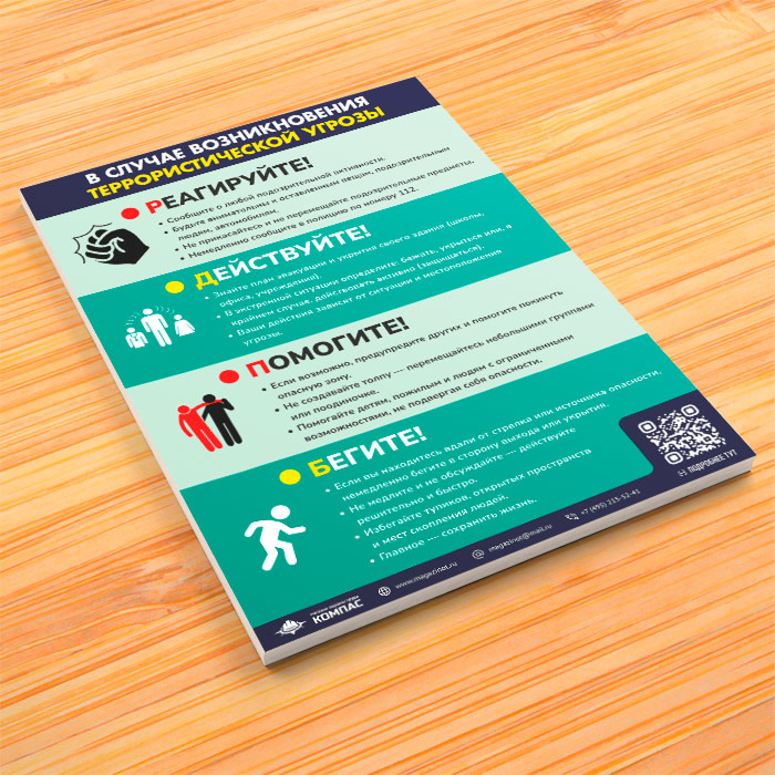 Плакат «В случае возникновения террористической угрозы» (М-109, ламинированная бумага, А3, 1 лист) в Тюмени купить