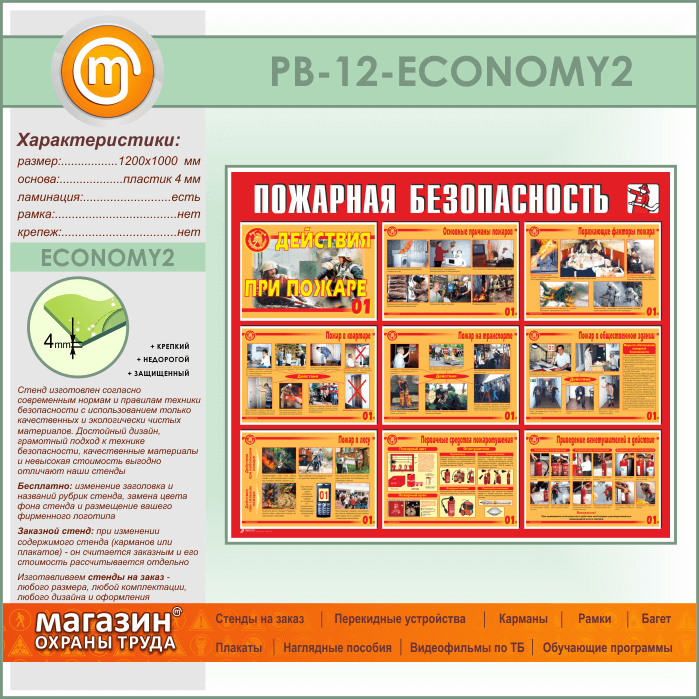 Стенд «Пожарная безопасность. Действия при пожаре» (PB-12-ECONOMY2) в Тюмени купить