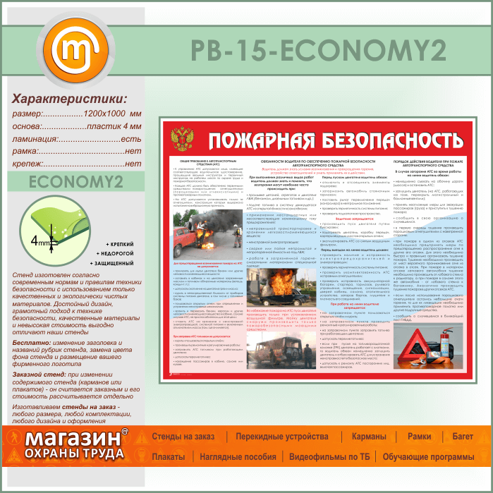 Стенд «Пожарная безопасность на автотранспорте» (PB-15-ECONOMY2) в Тюмени купить