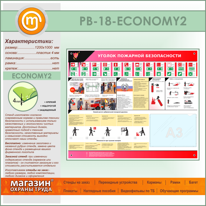 Стенд «Уголок пожарной безопасности» с карманом А3 формата (PB-18-ECONOMY2) в Тюмени купить