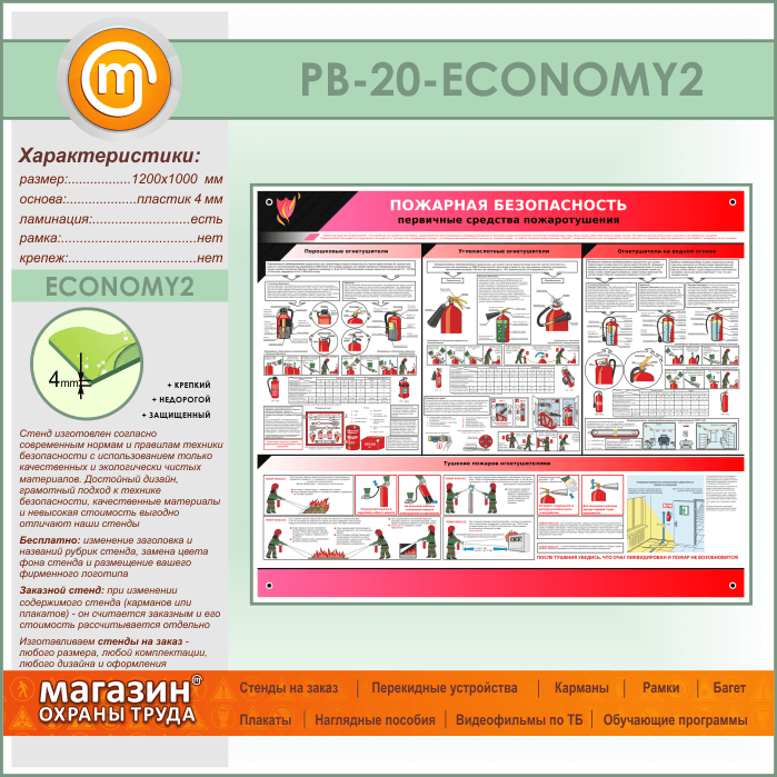 Стенд «Пожарная безопасность. Первичные средства пожаротушения» (PB-20-ECONOMY2) в Тюмени купить