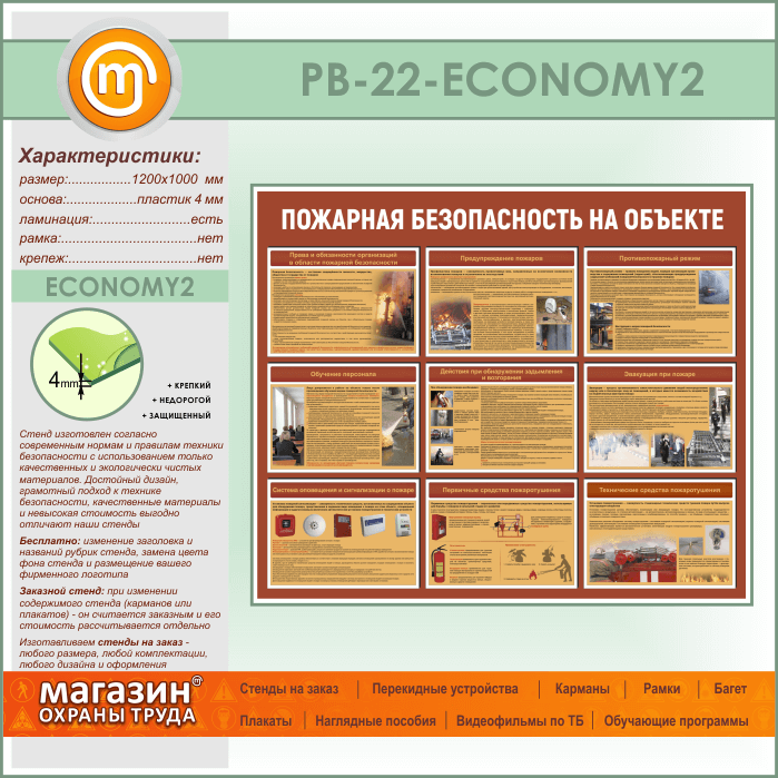 Стенд «Пожарная безопасность на объекте» (PB-22-ECONOMY2) в Тюмени купить