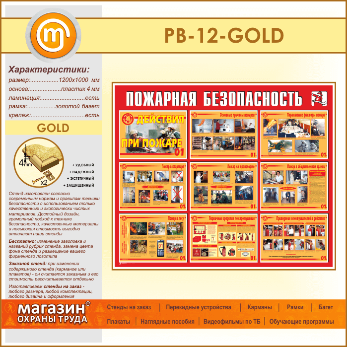 Стенд «Пожарная безопасность. Действия при пожаре» (PB-12-GOLD) в Тюмени купить