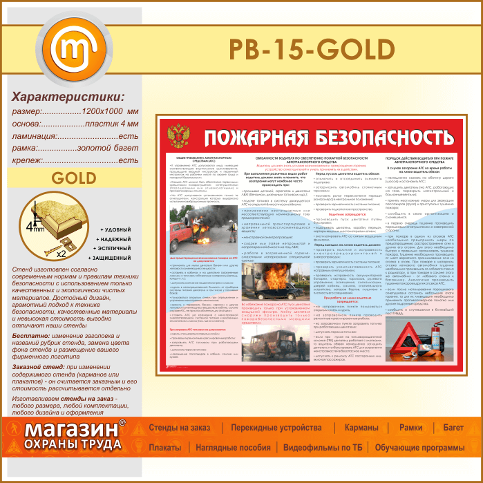 Стенд «Пожарная безопасность на автотранспорте» (PB-15-GOLD) в Тюмени купить