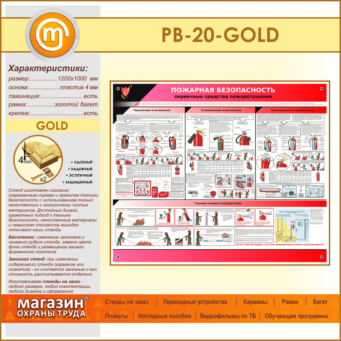 Стенд «Пожарная безопасность. Первичные средства пожаротушения» (PB-20-GOLD) в Тюмени купить