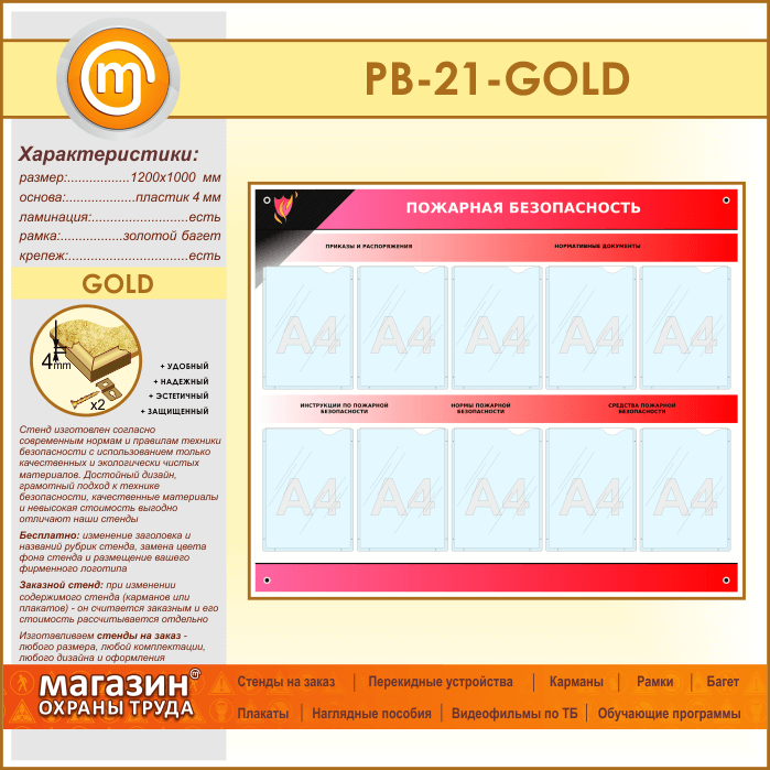 Стенд «Пожарная безопасность» с 10 карманами (PB-21-GOLD) в Тюмени купить