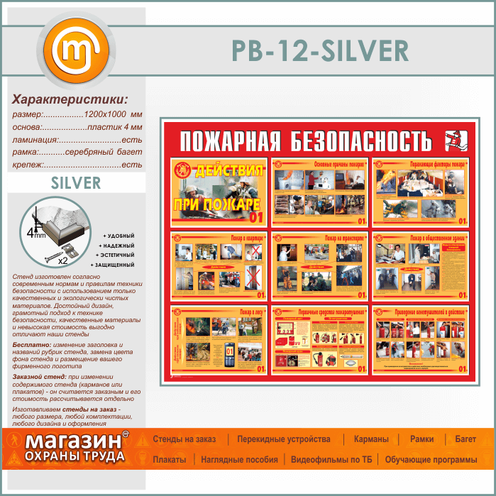 Стенд «Пожарная безопасность. Действия при пожаре» (PB-12-SILVER) в Тюмени купить