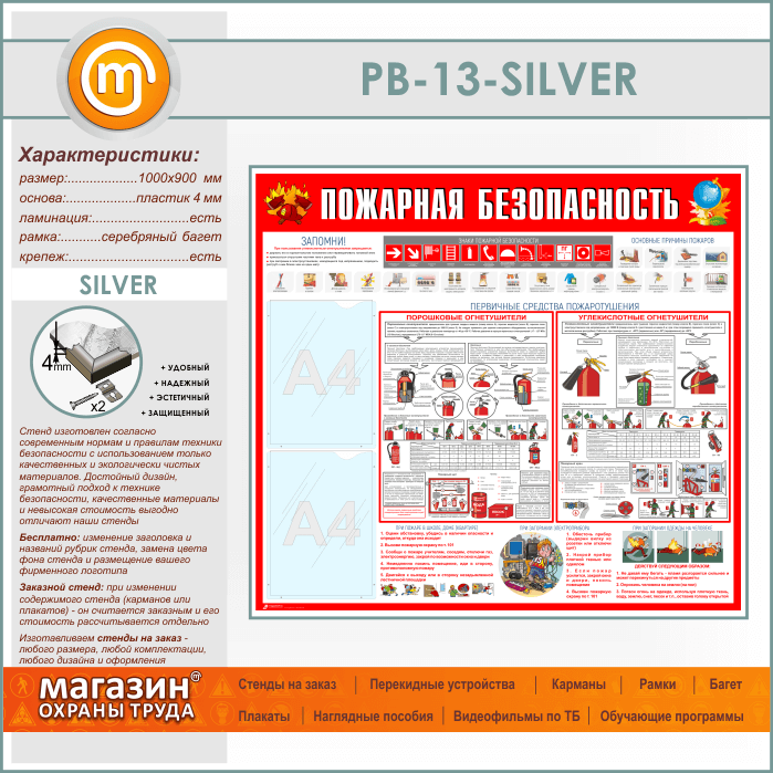 Стенд «Пожарная безопасность» с 2 карманами (PB-13-SILVER) в Тюмени купить
