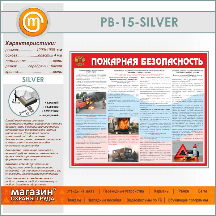 Стенд «Пожарная безопасность на автотранспорте» (PB-15-SILVER) в Тюмени купить