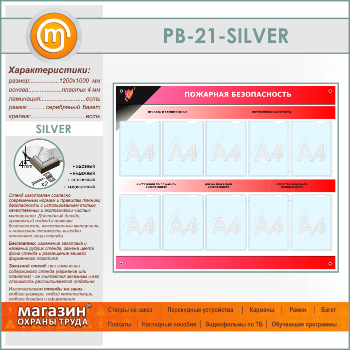 Стенд «Пожарная безопасность» с 10 карманами (PB-21-SILVER) в Тюмени купить