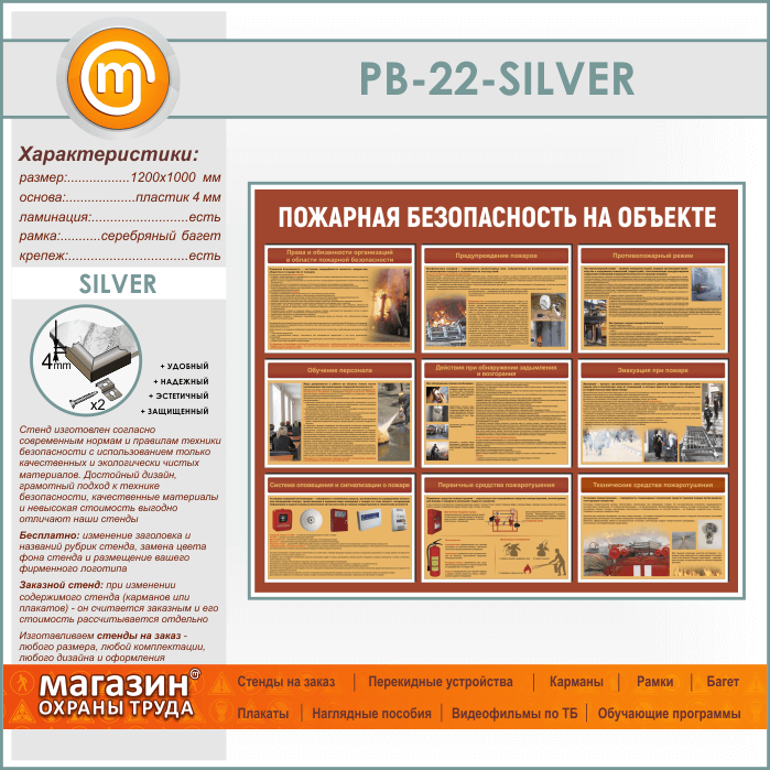 Стенд «Пожарная безопасность на объекте» (PB-22-SILVER) в Тюмени купить