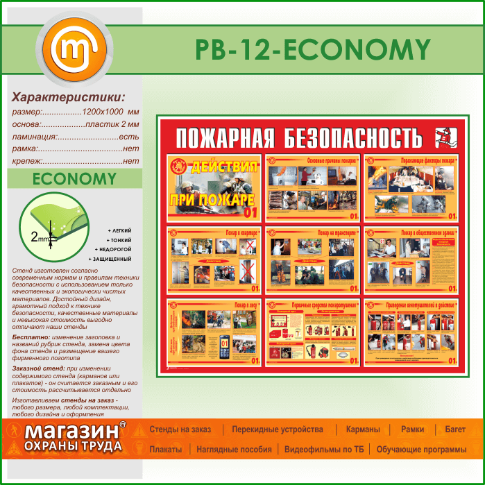 Стенд «Пожарная безопасность. Действия при пожаре» (PB-12-ECONOMY) в Тюмени купить