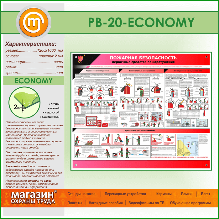 Стенд «Пожарная безопасность. Первичные средства пожаротушения» (PB-20-ECONOMY) в Тюмени купить