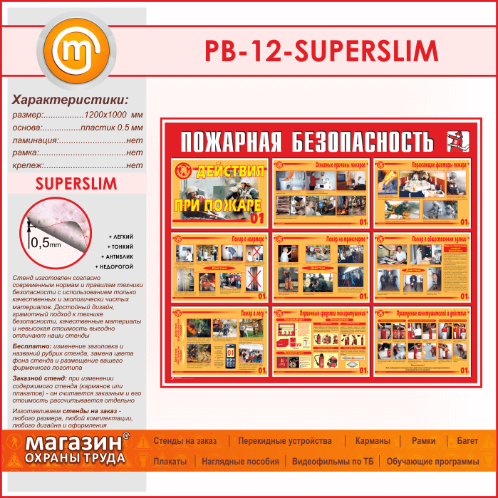 Стенд «Пожарная безопасность. Действия при пожаре» (PB-12-SUPERSLIM) в Тюмени купить