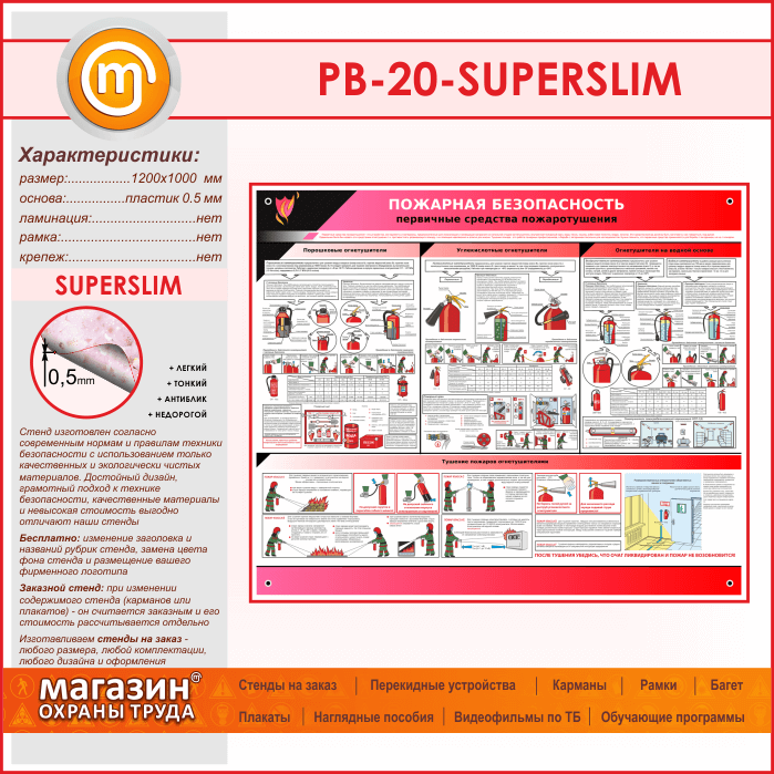 Стенд «Пожарная безопасность. Первичные средства пожаротушения» (PB-20-SUPERSLIM) в Тюмени купить
