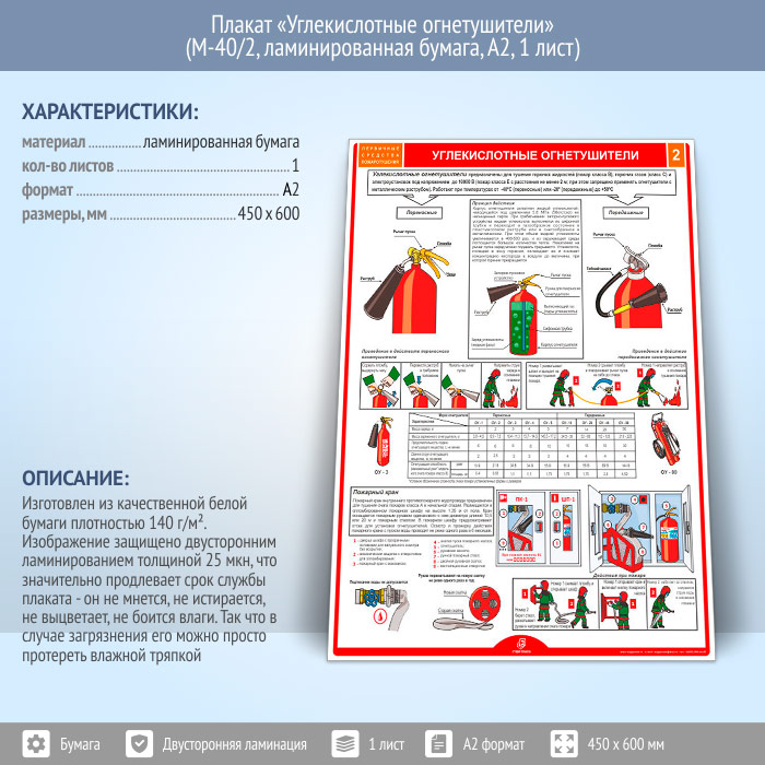 Плакат «Углекислотные огнетушители» (М-40/2, ламинированная бумага, А2, 1 лист) в Тюмени купить